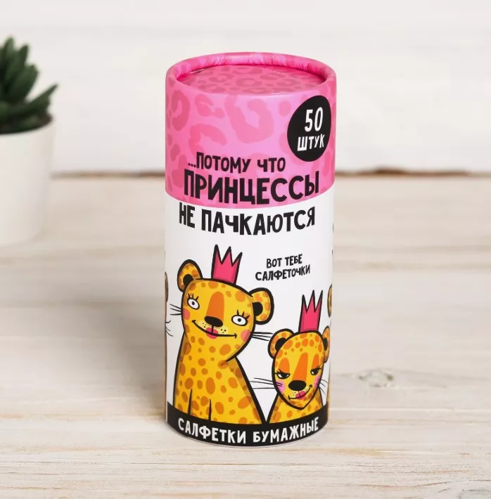 Салфетки бумажные двухслойные в тубусе "Принцессы не пачкаются" в тубусе 50шт.