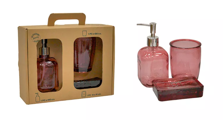 SAN MIGUEL Набор для ванной 3пр (стакан, мыльница, дозатор) нежно-розовый