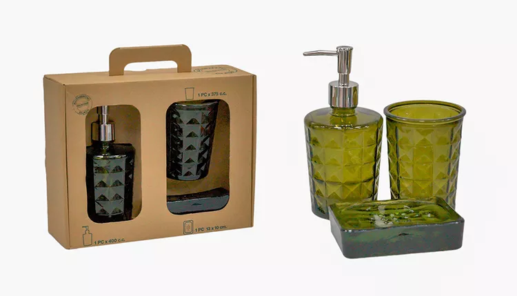 SAN MIGUEL Набор для ванной 3пр (стакан, мыльница, дозатор) оливковый
