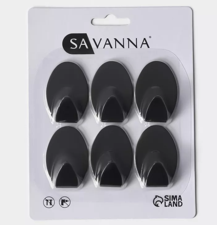"SAVANNA" Набор крючков овал., металлических "Black Loft" 6шт. 1,9х5,3х3,5см, цв.черный