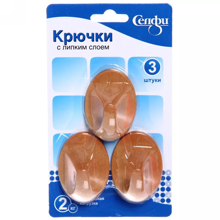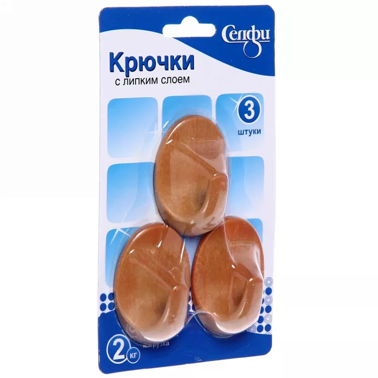 "Селфи" Набор крючков овальных, самоклеящихся 3шт., цв.под дерево