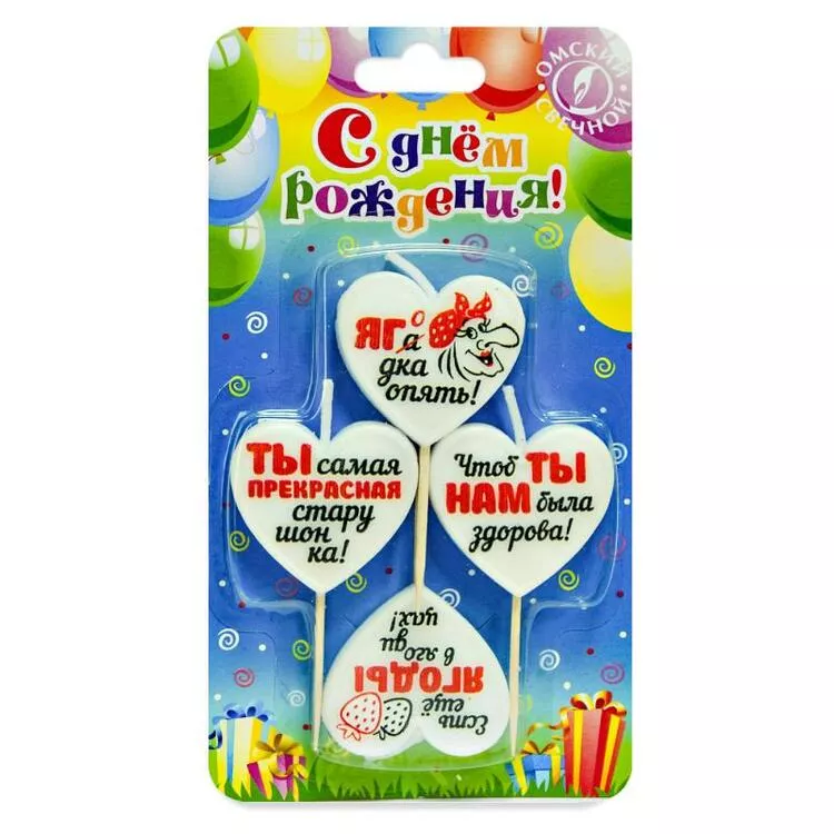 "Сердечко" Свечи для торта на шпажке "Ягодка опять" 4шт.