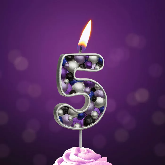 "Серебряные пузырьки" Свечи для торта "Цифра 5"