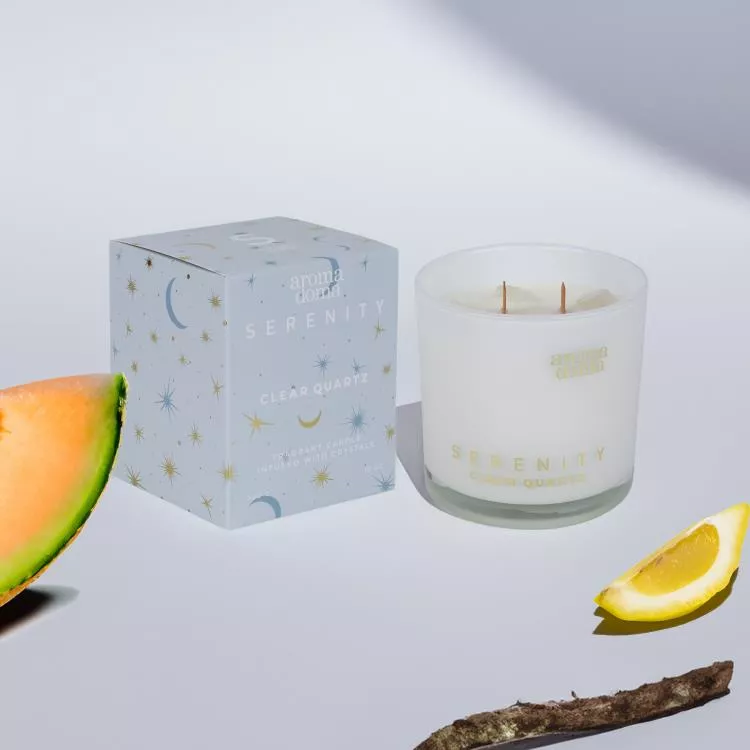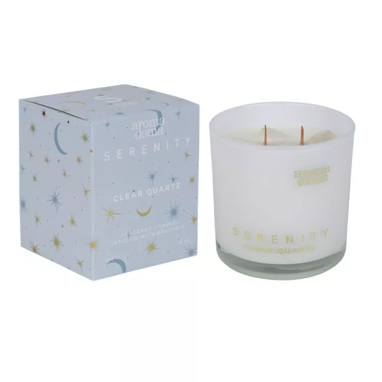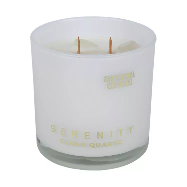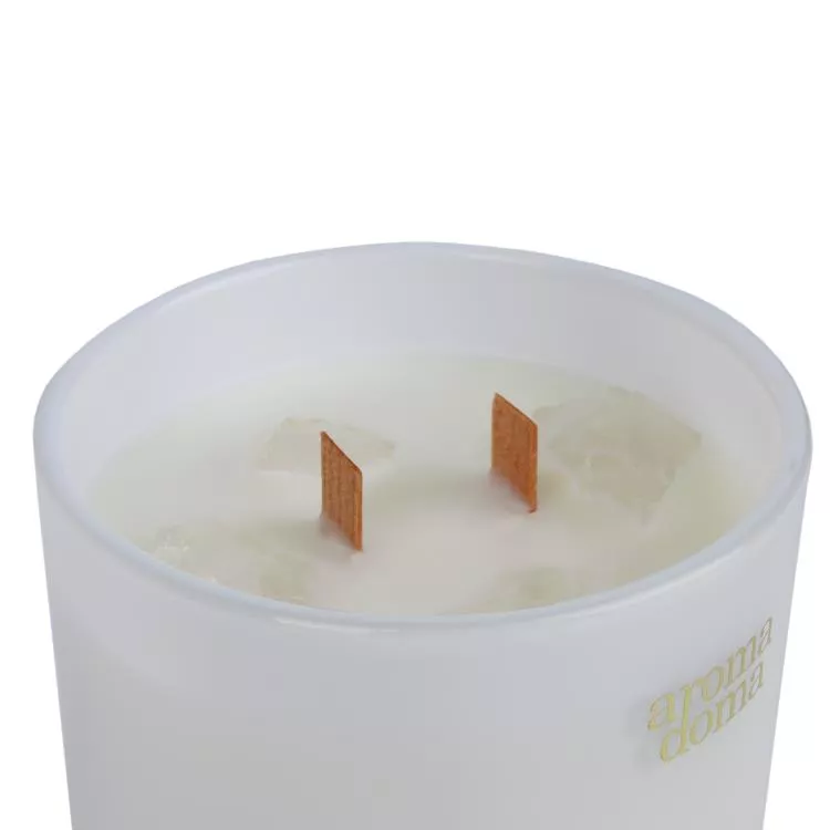 Изящная свеча, изготовленная из соевого воска, станет прекрасным дополнением вашего дома. С двумя деревянными фитилями, создающими эффект потрескивания, свеча подарит ощущение уюта и тепла. Кристаллы горного хрусталя внутри свечи усиливают энергию и прояс...