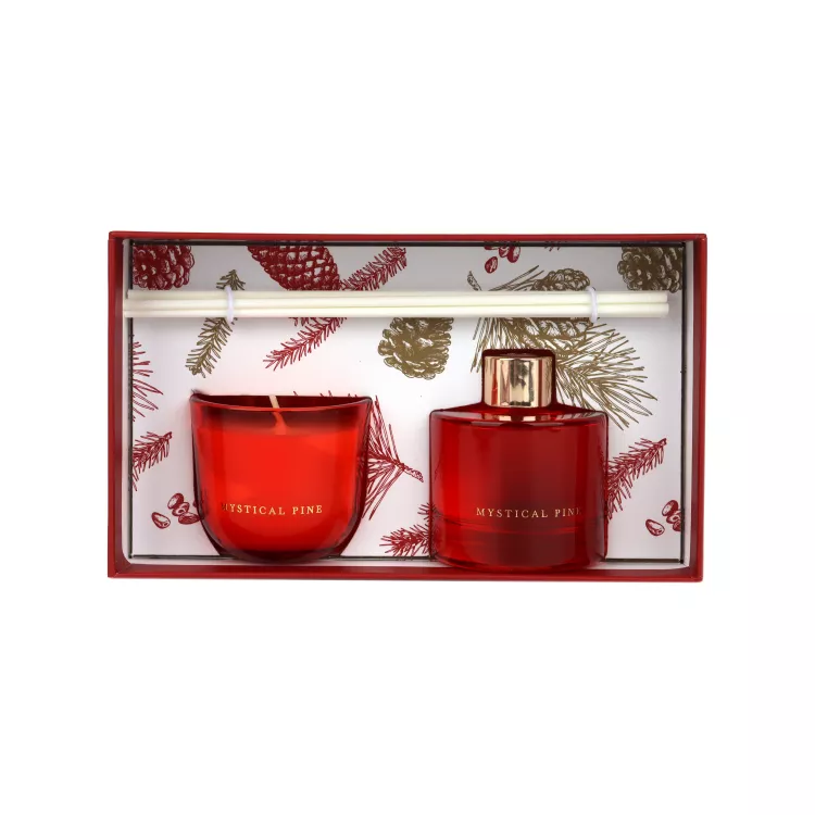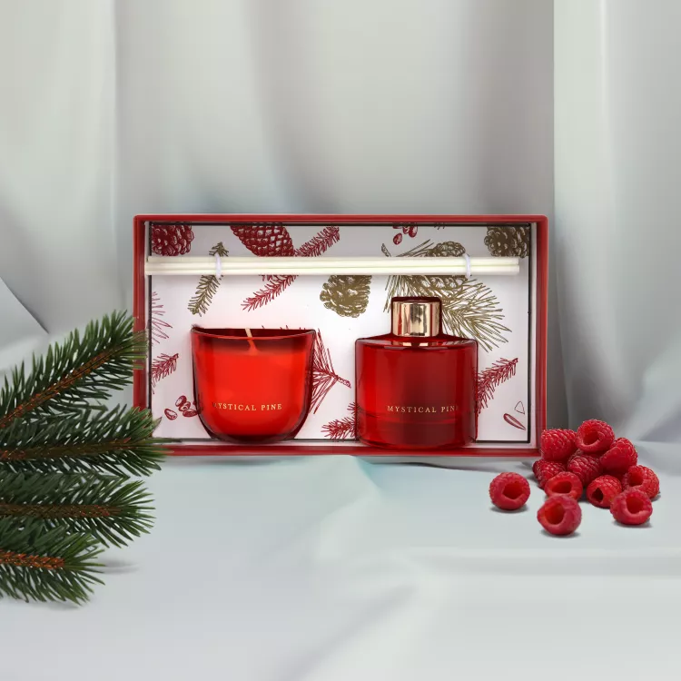 Волнующий ароманабор станет восхитительным украшением любого интерьера и идеальным подарком для любителей изысканных ароматов. Набор включает в себя стильный аромадиффузор и свечу, гармонично помещенные в элегантную подарочную упаковку.