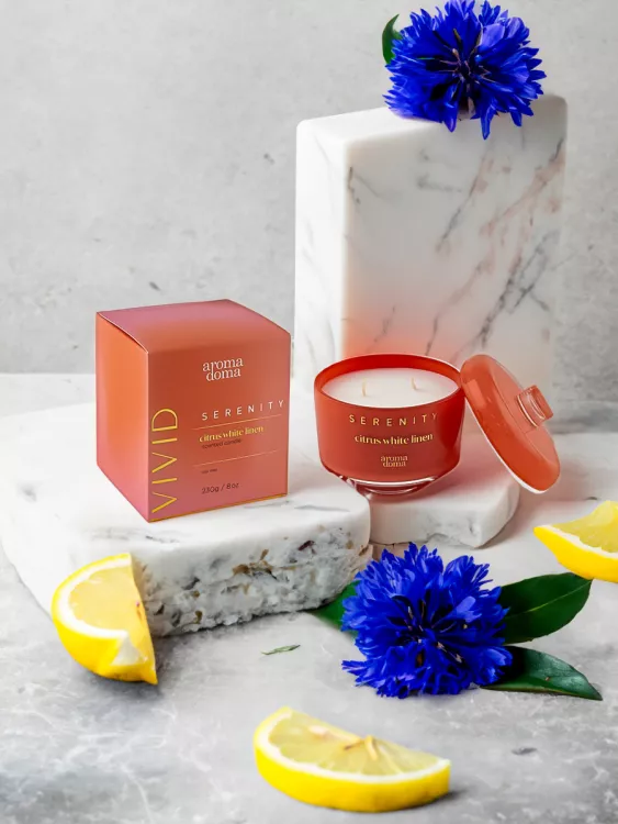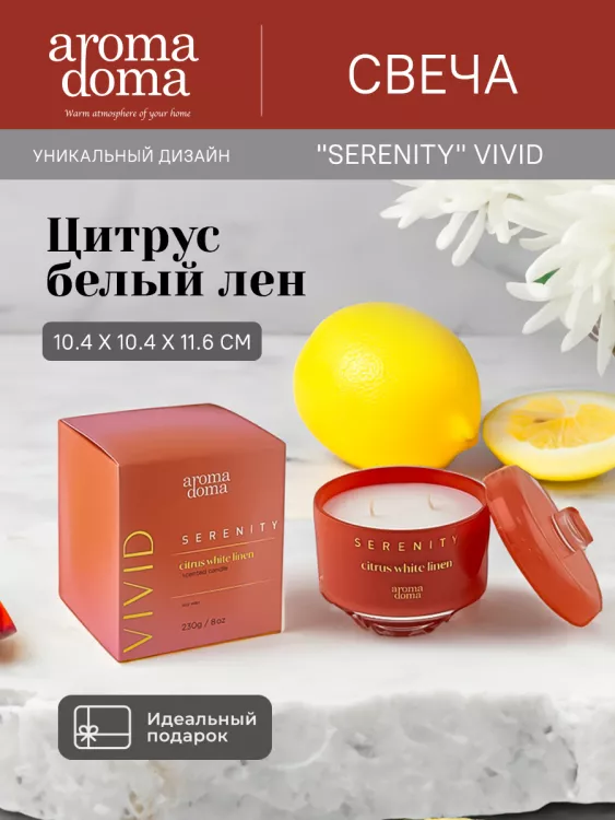 "Serenity" Vivid Свеча "Цитрус белый лен" 2 фитиля 10,4x10,4x11,6см VV-UJ100110VVRD