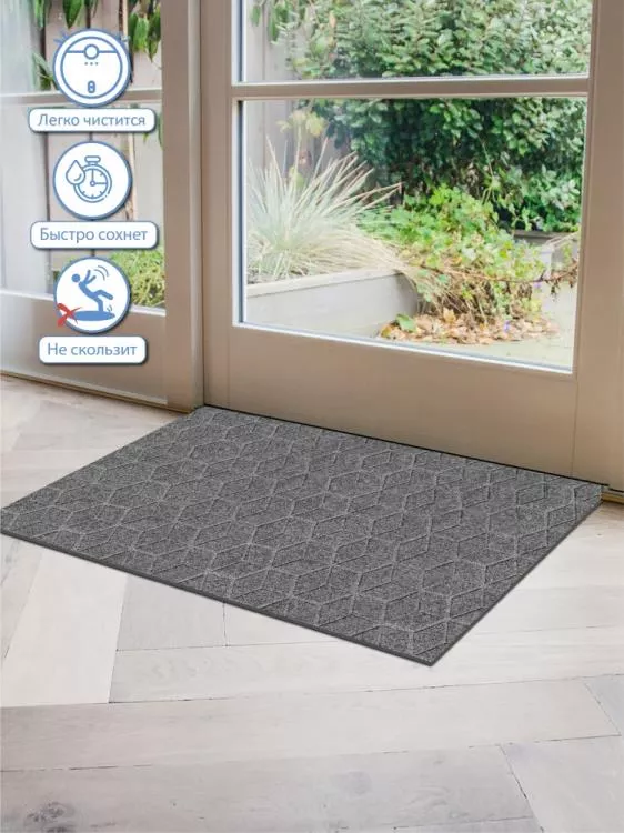 SHAHINTEX ПРАКТИК Коврик придверный влаговпитывающий "Соты" 60х90см, цв.серый