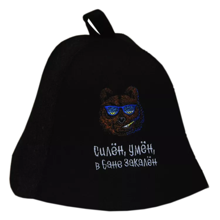 Шапка для сауны "Силен, умен, в бане закален", цв.черный