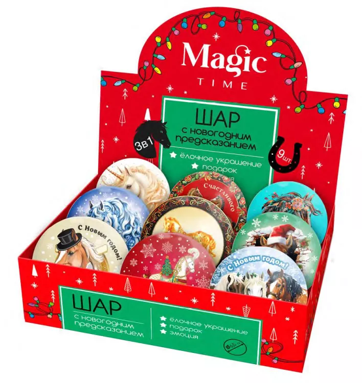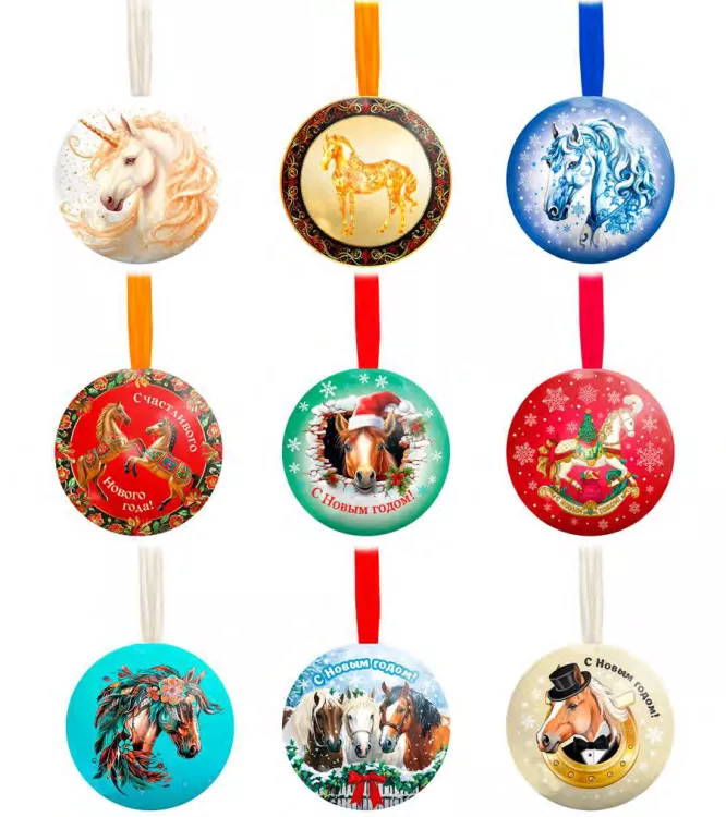 Шар металлический "Лошадка" с пожеланием внутри 6,5см ДИСПЛЕЙ 9 95092