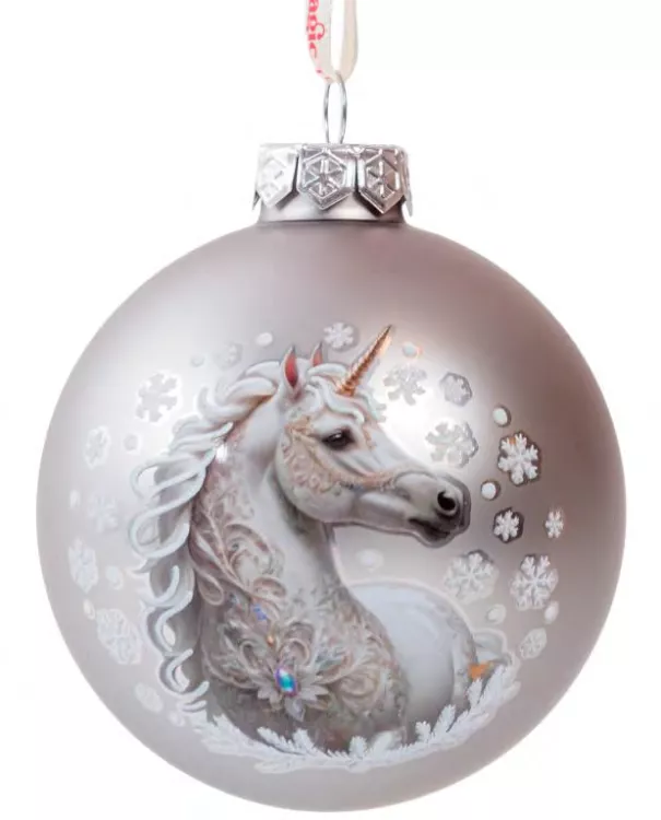 Шар новогодний "Единорог" 8см, цв.серебро