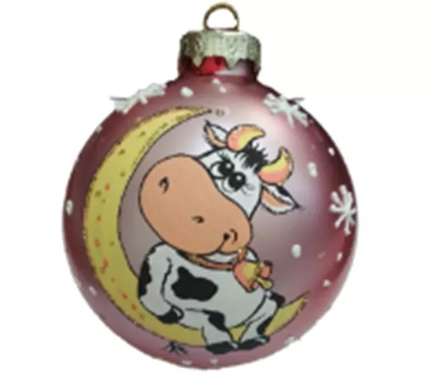 Шар новогодний "Коровка на луне" 8,5см в п.у