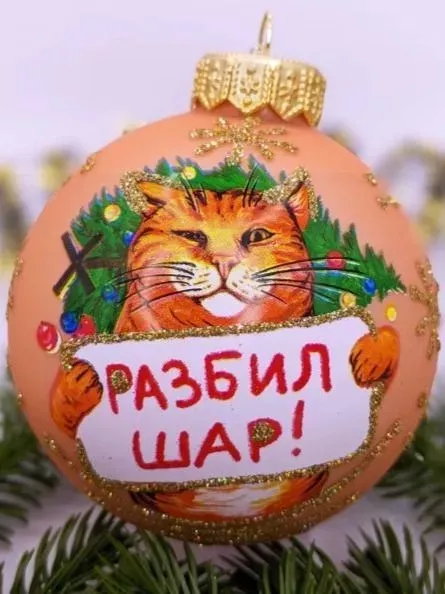 Шар новогодний "Кот.Разбил шар" 8см в п.у.