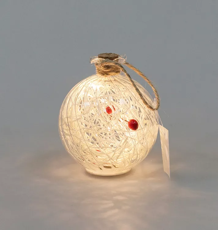Шар новогодний LED "Прозрачный с белой елочкой" 10см