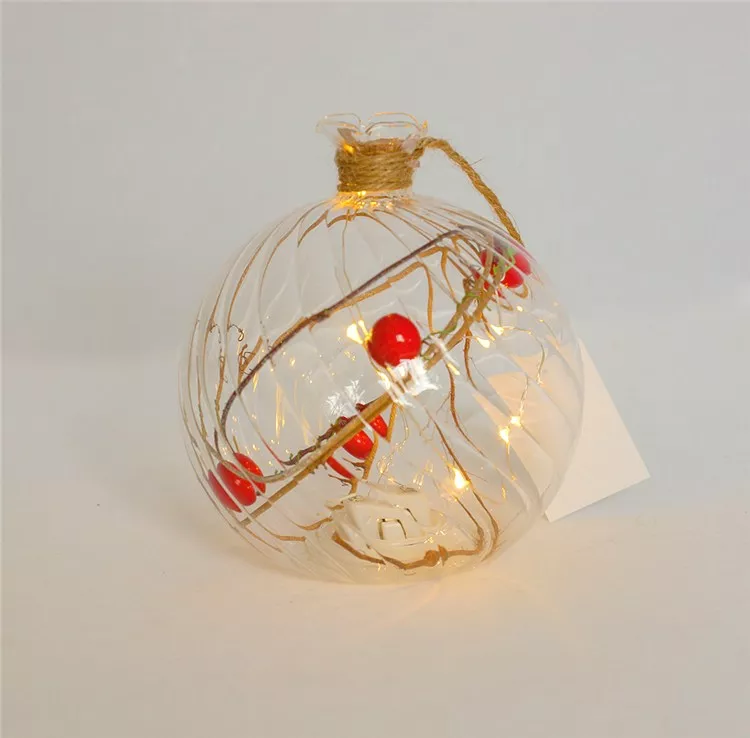 Шар новогодний LED "Прозрачный с красными шариками" 13см