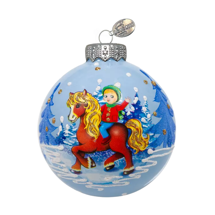 Шар новогодний "Мальчик на лошадке" 8см в п.у.