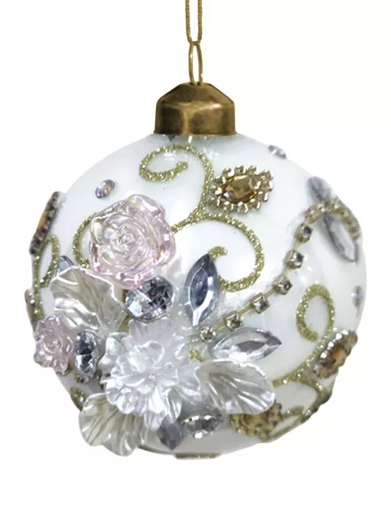Новогоднее елочное украшение в виде белого шарика - это идеальный вариант подарка в качестве праздничного сувенира. Шарик станет отличным украшением на елке, дополнит собой праздничный интерьер и просто будет радовать окружающих. Выполнен из стекла и поли...