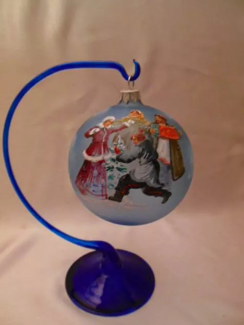 Шар новогодний "Русские пляски" d=10см, синий, на подст.в п.у