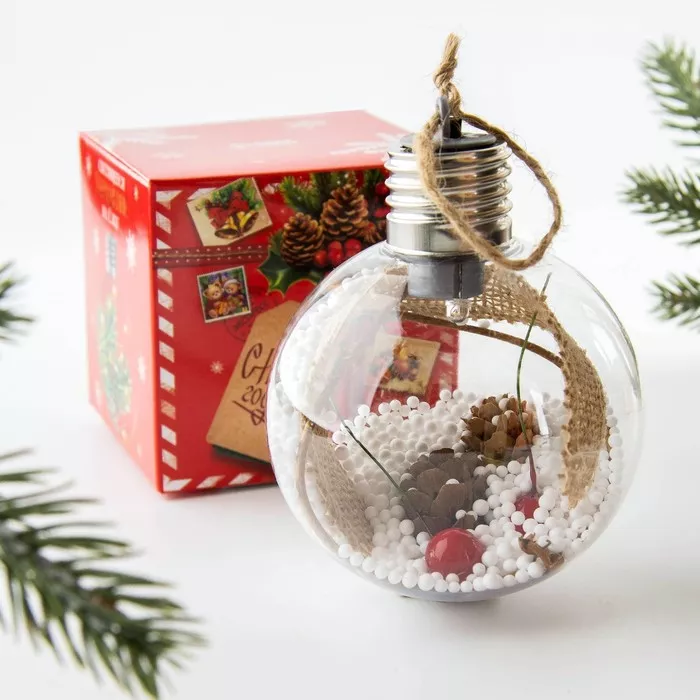 Шар новогодний "С Новым годом!" с подсветкой 8см цв.теплый белый