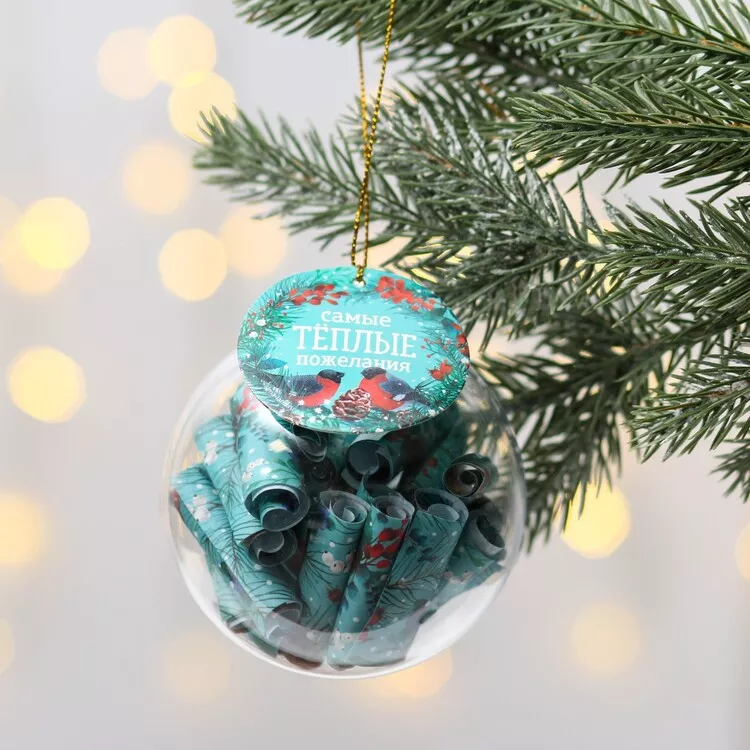 Шар новогодний "Самые теплые пожелания" со свитками 8см
