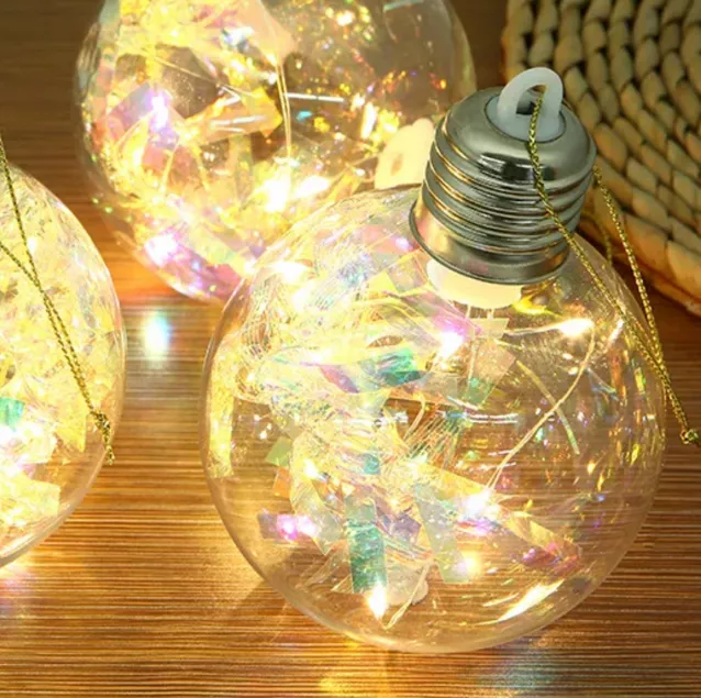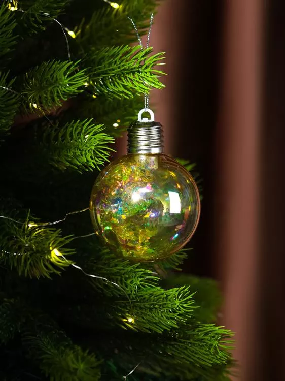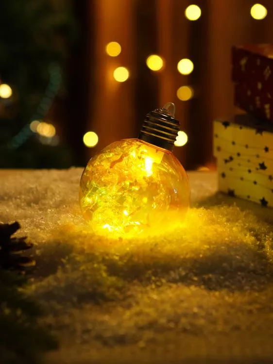 Шар новогодний "Счастье" с подсветкой 8см, цв.теплый белый