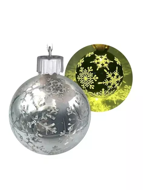 Шар новогодний "Снежинки" цв.серебро светодиод. 8см