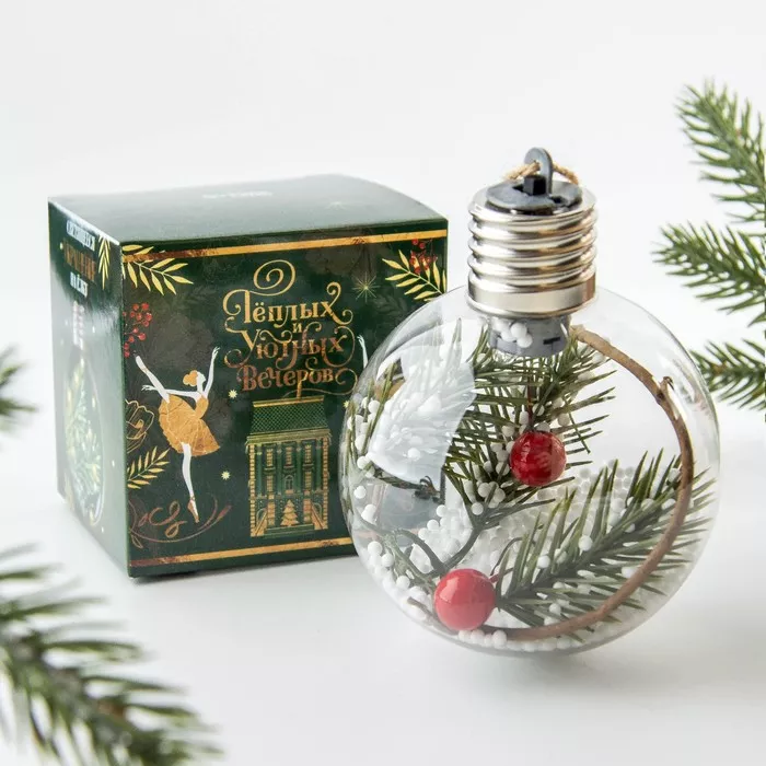 Шар новогодний "Теплых и уютных вечеров" с подсветкой 8см цв.теплый белый