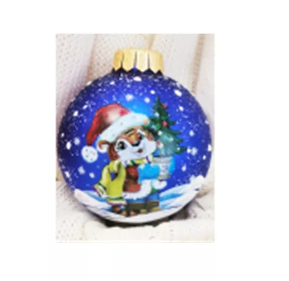 Шар новогодний "Тигрик с ёлочкой" 10см