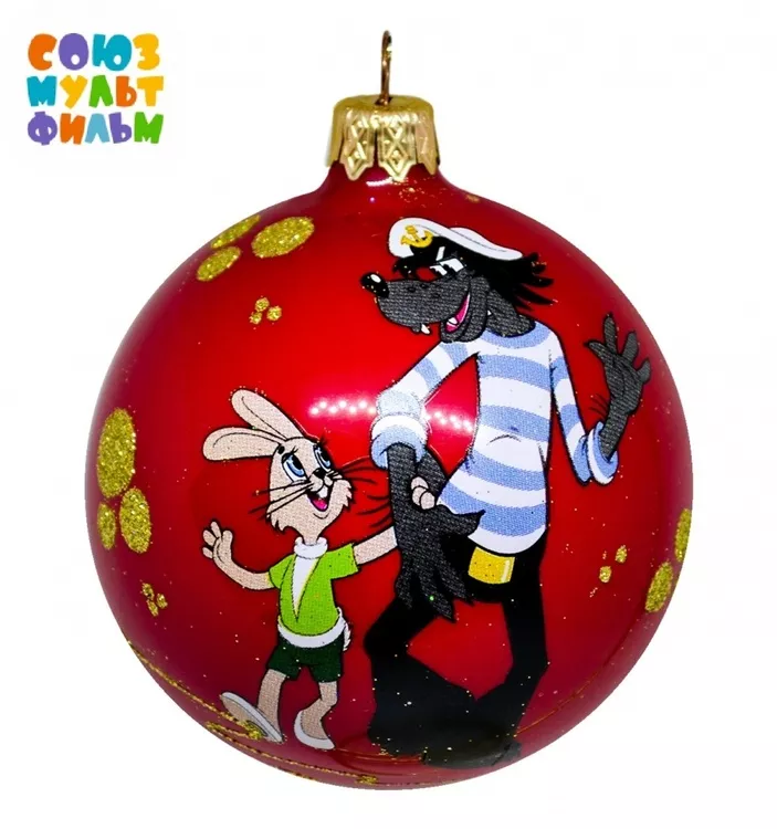 Шар новогодний "Волк моряк и Заяц" 8,5см в п.у.