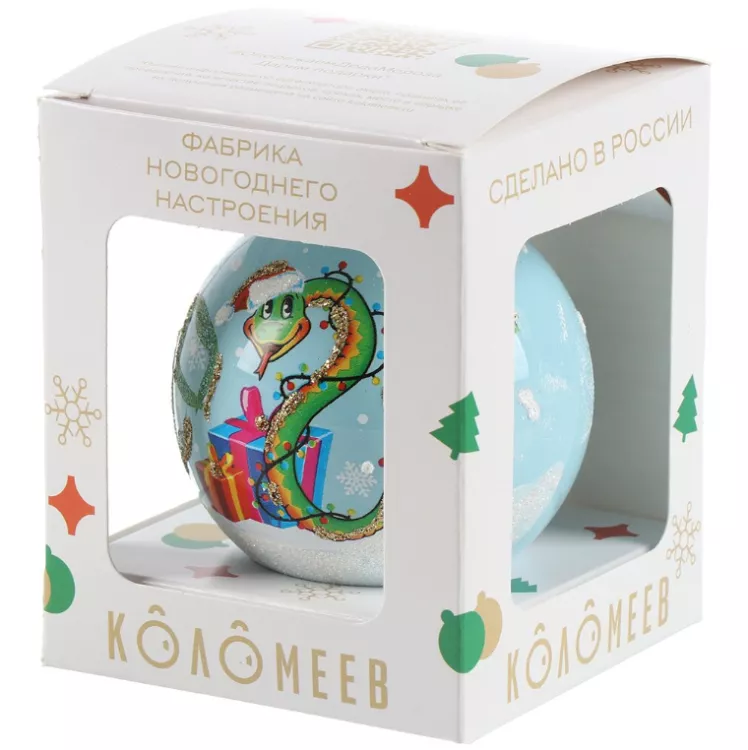 Шар новогодний "Змея с гирляндой" 6,5см в п.у.