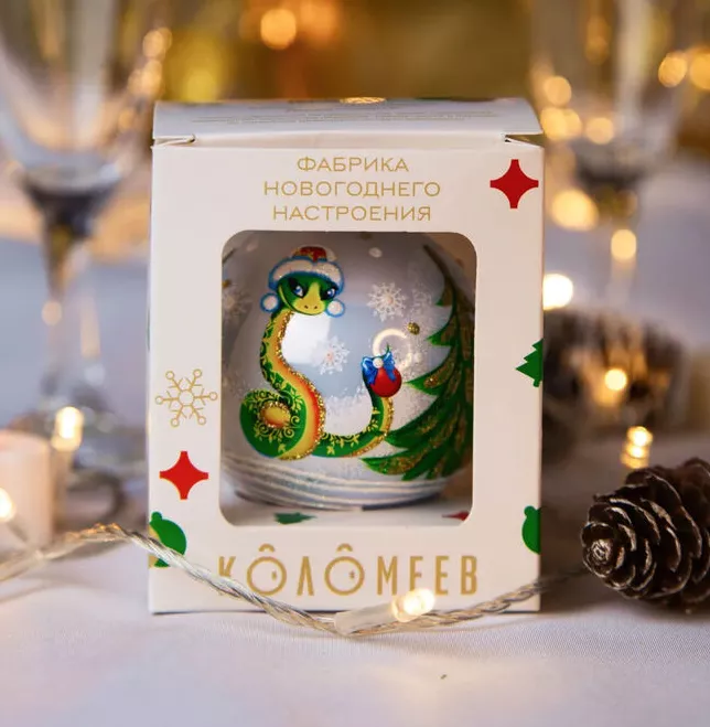 Шар новогодний "Змея "Снегурочка" 6,5см в п.у.