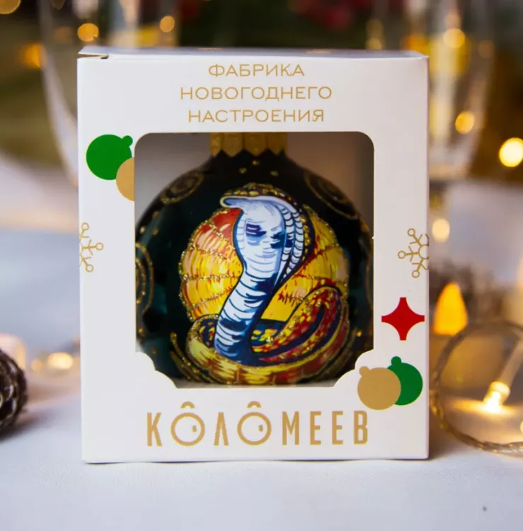 Шар новогодний "Змея в корзине" 8см в п.у.