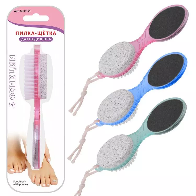 Изготовлена: корпус из пластмассы, рабочая часть из синтетической щетины, искусственной пемзы, металла и полимерного материала с абразивным покрытием.