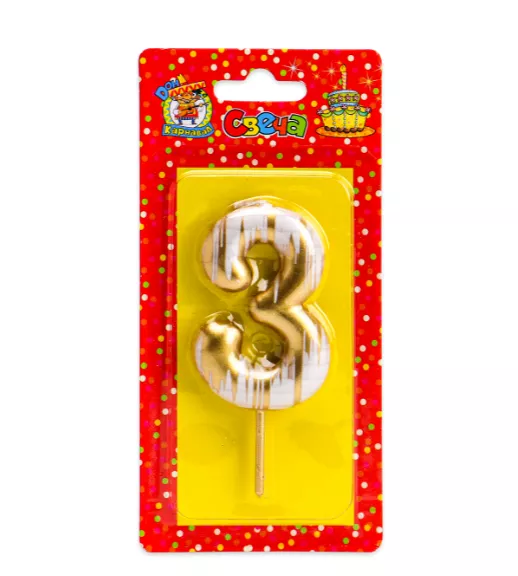 "Шебби шик" Свечи для торта "Цифра 3" цв.золото