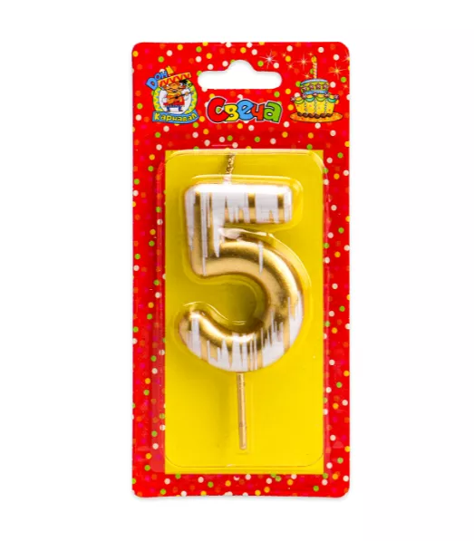 "Шебби шик" Свечи для торта "Цифра 5" цв.золото