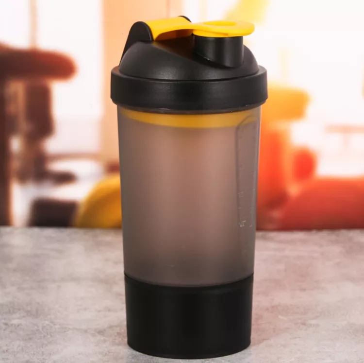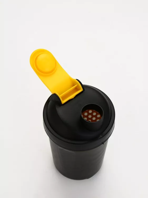 Шейкер для напитков 500мл с чашей под протеин, цв.черный
