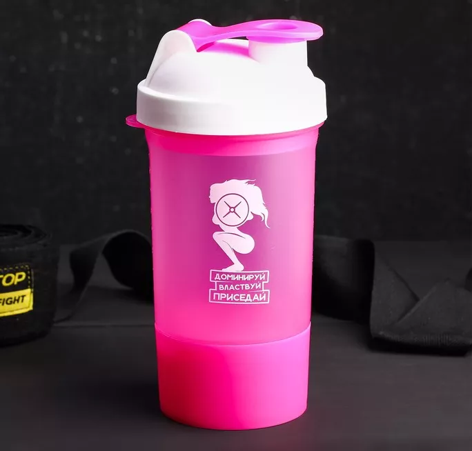 Шейкер для напитков "Доминируй, властвуй, приседай" 500мл с чашей под протеин