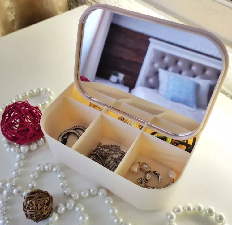 Шкатулка ювелирная с зеркалом 15х11,5х5,7см, цв.бежевый