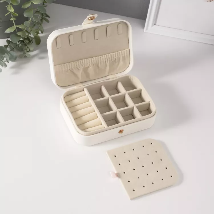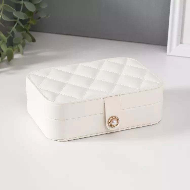 Шкатулка ювелирная "Стёганная. Ромбы" 11х16х5см цв.белый