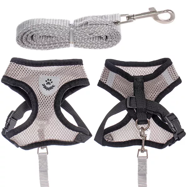 Шлейка с поводком "Sweet puppy" 118см, размер S, цв.серый