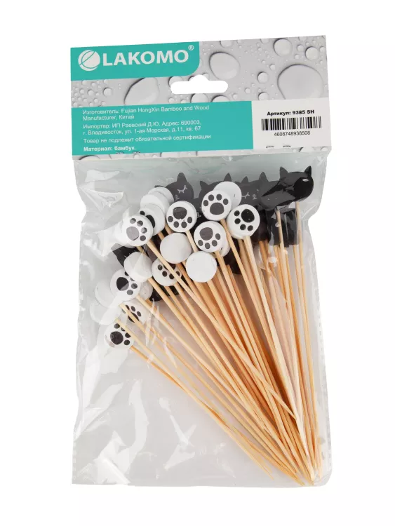 Шпажки для канапе "Котики" бамбук, 50шт. 12см