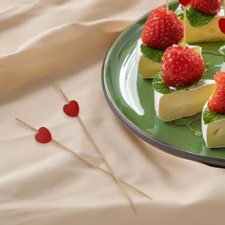 Деревянные шпажки для канапе из бамбука с красными сердечками - это идеальное решение для стильной и праздничной сервировки стола. Они добавят яркий акцент к вашим закускам на фуршете, вечеринке или празднике. Эти шпажки прекрасно подойдут для сыра, колба...