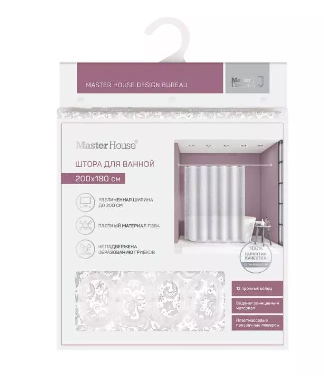 Штора для ванной "Кружево" 180х200см