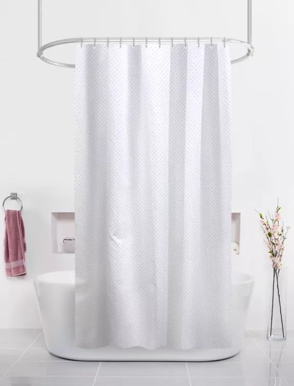 Штора для ванной "Серебряные стразы" 180х200см, цв.белый