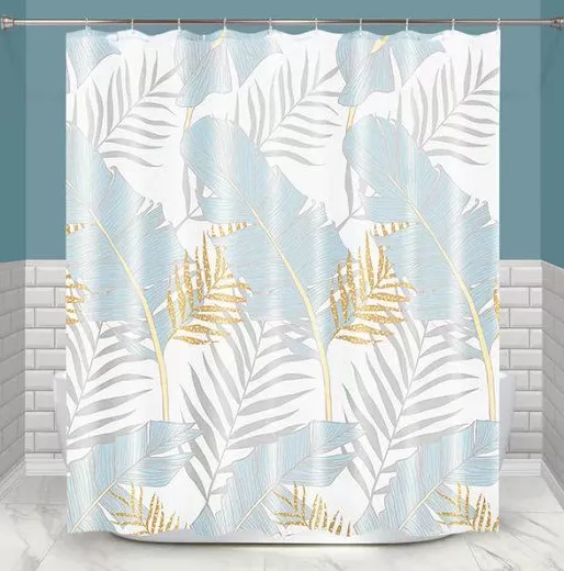 Штора для ванной "Весенняя листва" 180х200см, цв.белый, золото
