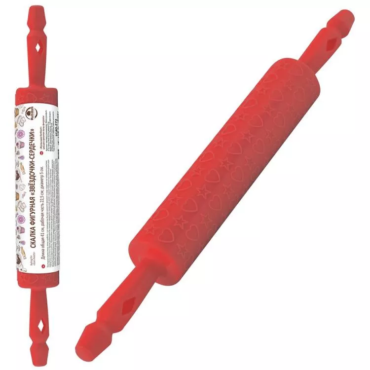 Скалка фигурная "Звездочки-сердечки" 22,х5см