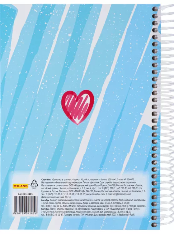 Твёрдый переплёт 7БЦ, плотность листов скетчбука 100 г/м2, 64л