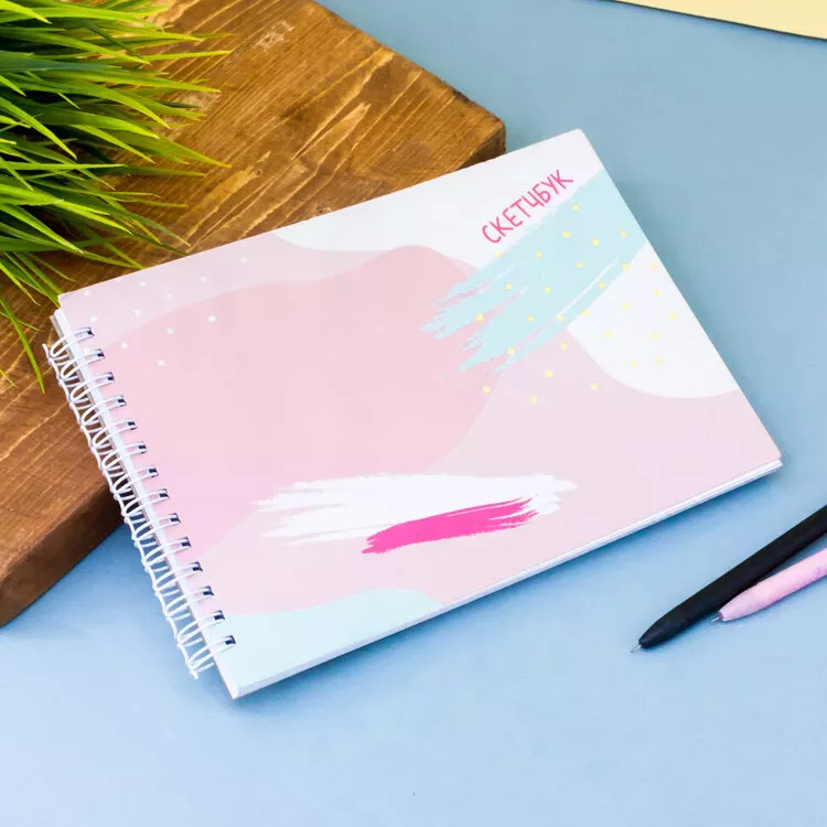 Страницы скетчбука пустые, без линеек и клеточек. Размер: 14 х 20 х 1,2см. Количество листов: 40 шт. Плотность бумаги: 190 гр/м2. Основание из плотного картона толщиной 1 мм. Каждый скетчбук упакован в плёнку.