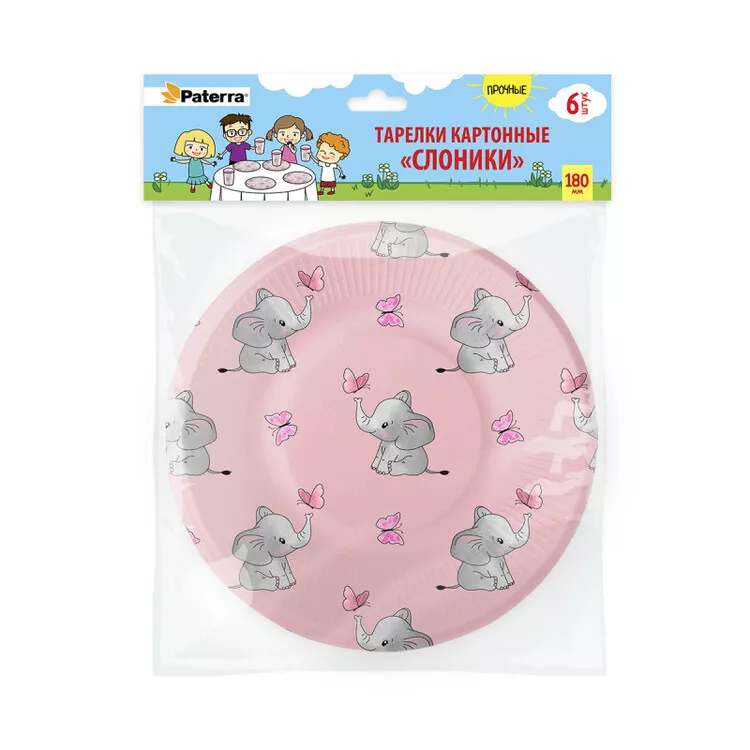 "Слоники" Набор бум.тарелок 6шт. 18см