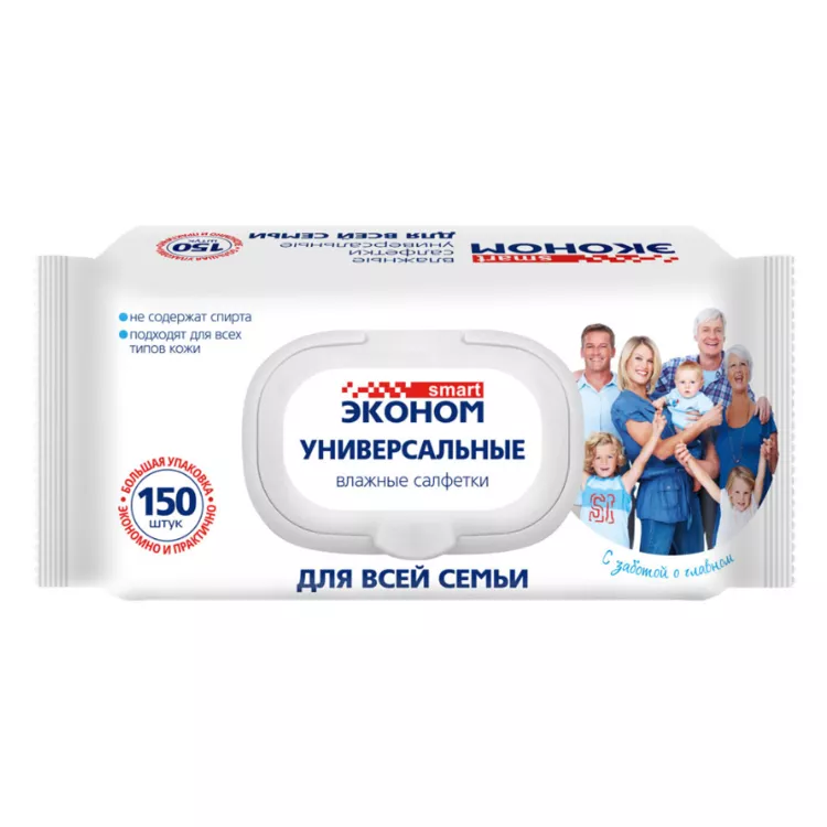 "Smart"Эконом" Влажные салфетки для всей семьи с защитным клапаном 150шт.
