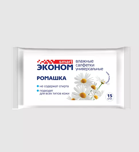 "Smart"Эконом" Влажные салфетки с экстрактом ромашки 15шт.